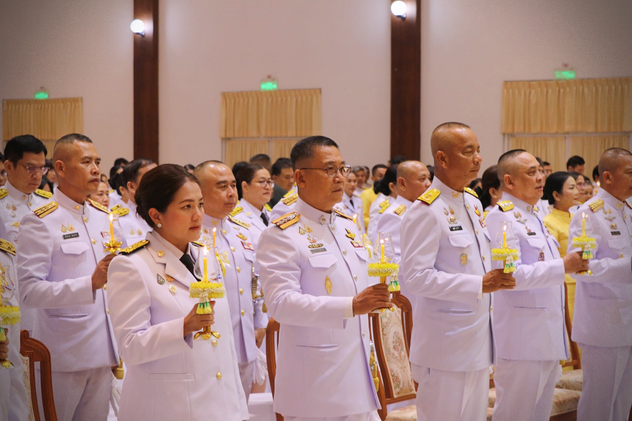 28 ก.ค. 68 เวลา 18.00 – 19.30 น. พ.ต.อ.สุระสิทธิ์ สกุลพานิช ผกก.ตชด.34 และ พ.ต.ท.เอกวัฒน์ เลิศนพรัตน์วงศ์ ผบ.ร้อย.ตชด.343 พร้อมข้าราชการตำรวจชั้นสัญญาบัตรจำนวน 4 นาย เข้าร่วมพิธีพิธีถวายเครื่องราชสักการะ และวางพานพุ่ม (พุ่มทอง-พุ่มเงิน) และพิธีจุดเทียนชัยถวายพระพรชัยมงคล พระบาทสมเด็จพระเจ้าอยู่หัว เนื่องในโอกาสวันเฉลิมพระชนมพรรษา (28 ก.ค. 2568) ณ หอประชุมจังหวัดตาก ศาลากลางจังหวัดตาก โดยมี นายชูชีพ พงษ์ไชย ผู้ว่าราชการจังหวัดตาก เป็นประธานในพิธี มีส่วนราชการ เข้าร่วมกิจกรรม ประมาณ 320 คน