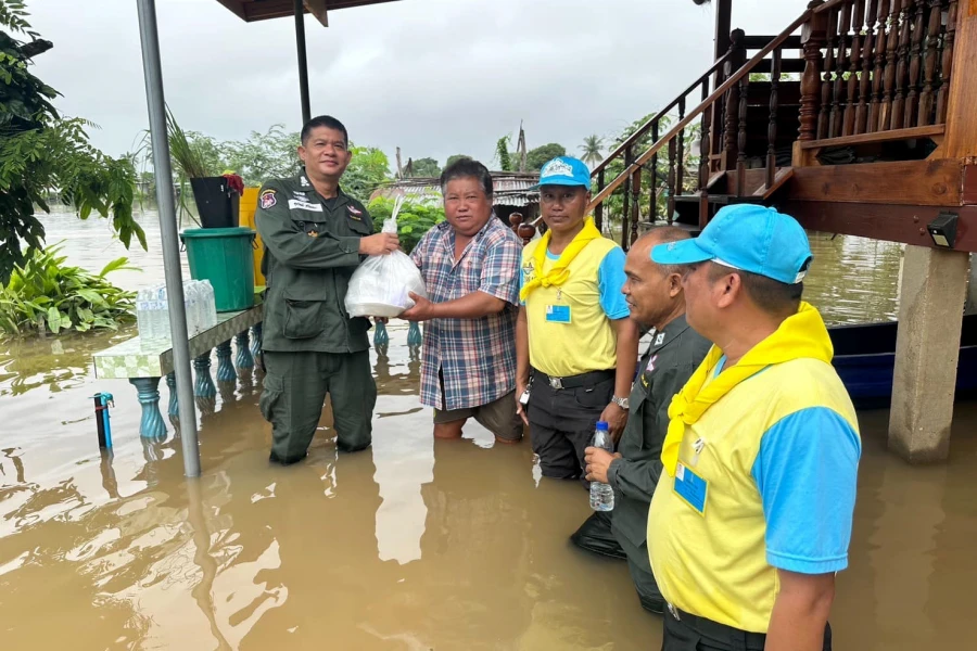 พ.ต.อ.ศุภวัฒน์ ศรีชัยชนะ ผกก.ตชด34 พร้อมกำลังพลชุดช่วยเหลือผู้ประสบภัย กก.ตชด.34 นำอาหารและน้ำดื่มมอบให้กับประชาชนในพื้นที่ประสบภัยเพื่อสร้างขวัญและกำลังใจให้กับผู้ประสบอุทกภัยน้ำท่วม จำนวน 1 เที่ยว 2 ลำเรือ น้ำดื่มจำนวน 50 แพ็ก รวมจำนวนผู้โดยสาร 25 คน