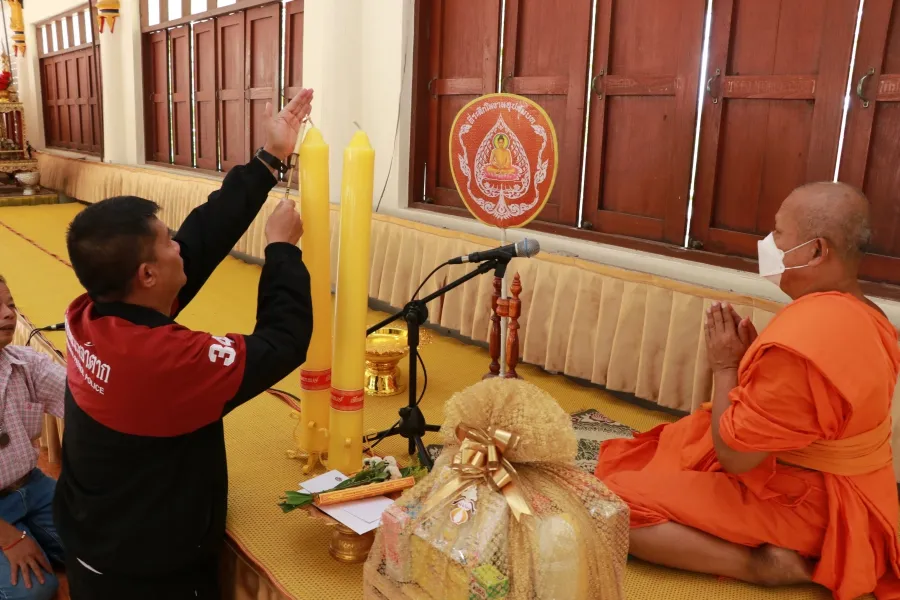 15 ส.ค.66 เวลา 10.00 น. พ.ต.อ.ศุภวัฒน์ ศรีชัยชนะ ผกก.ตชด.34 พร้อมด้วยข้าราชการตำรวจ กก.ตชด.34 ร่วมถวายเทียนจำนำพรรษาและสังฆทาน แด่พระภิกษุสงฆ์ วัดท่านา จังหวัดตาก เพื่อให้พระสงฆ์จุดบูชาพระรัตนตรัย เป็นเวลา 3 เดือนตลอดพรรษา