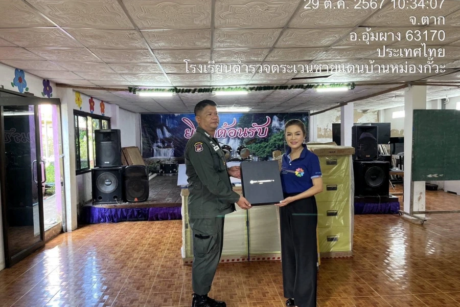 29 ต.ค.67 พ.ต.อ.ศุภวัฒน์ ศรีชัยชนะ ผกก.ตชด.34 เดินทางโดย ฮ.ตร. หมายเลข 2222 นำคุณสุภางค์ มาลานีญา ผอ.ฝ่ายกิจการเพื่อสังคม บ.ท่าอากาศยานไทย จำกัด มหาชน พร้อมคณะ เดินทางไปตรวจเยี่ยมและติดตามผลการดำเนินงานตามโครงการพระราชดำริฯและมอบทุนการศึกษาให้กับนักเรียนโรงเรียนตำรวจตระเวนชายแดน เฉลิมพระเกียรติ 7 รอบ พระชนมพรรษา (บ้านหม่องกั๊วะ จังหวัดตาก)ต.แม่จัน อ.อุ้มผาง จว.ตาก โดยมี โดยมี ด.ต.อรุณ ดวงภักดี ครูใหญ่ฯพร้อมคณะครูให้การต้อนรับและอำนวยความสะดวกให้กับคณะ