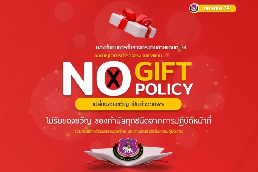 กก.ตชด.34 : ประกาศเจตนารมณ์ที่จะไม่รับของขวัญหรือของกำนันทุกชนิดจากการปฏิบัติหน้าที่ ( No Gift Policy )
