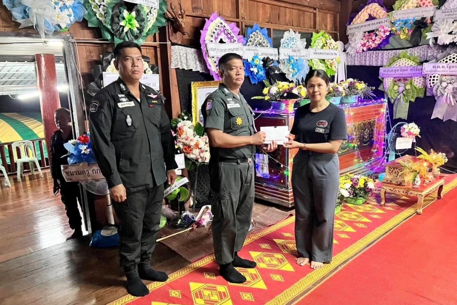 2) เงินสวัสดิการ ค่าจัดการศพขั้นต้นของ ร้อย ตชด.344 จำนวน 20,000 บาท โดยมี พ.ต.ท.ฐัตพล สายโรจน์ ผบ.ร้อย ตชด.344 เป็นผู้มอบ
