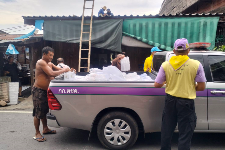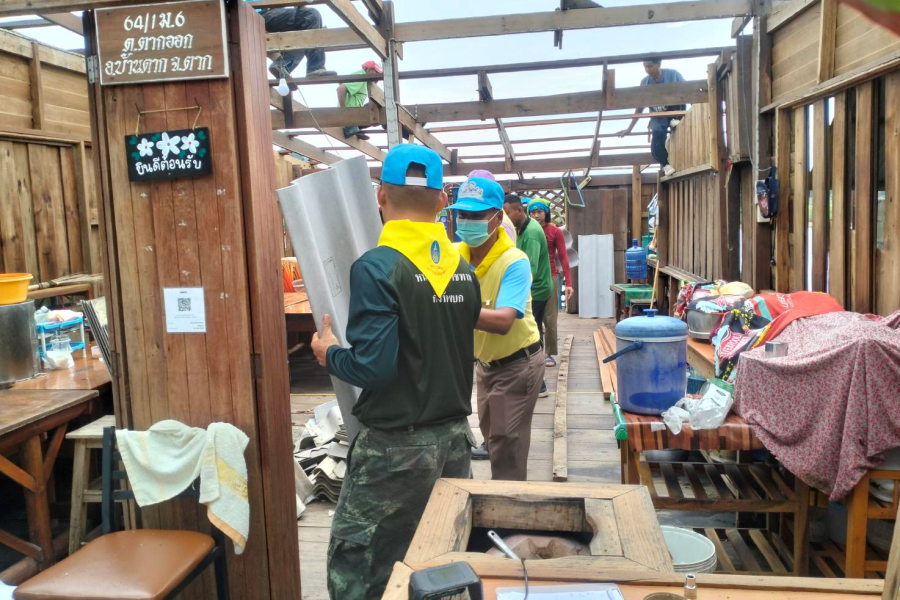 29 พ.ค.66 เวลา 0900 – 1200 น. พ.ต.ต.วิจิตร เชาวลิต สว.จอส.,กร.กก.ตชด.34 และ พ.ต.ท.นิกร ขุนทอง สว.งานแผนงานและงบประมาณ วปง.จอส.904 และเจ้าหน้าที่ จอส. รวม 4 นาย เข้าสำรวจพื้นที่และช่วยเหลือเบื้องต้นภัยพิบัติวาตภัย และมอบน้ำดื่มสะอาด ขวด 5 ลิตรจำนวน 100 ขวด ขวด 1.5 ลิตรจำนวน 100 ขวด มอบให้ผู้ที่ได้รับผลกระทบจากความเดือดร้อนวาตภัย พื้นที่ หมู่ที่ 6,7,8,13 และ ม.14 ต.ตากออก โดยมีรองนายกเทศมนตรีเทศบาลตำบลตากออกเป็นผู้รับมอบ จากการสำรวจผู้ได้ลบรับผลกระทบประมาณ 150 กว่าหลังคาเรือน