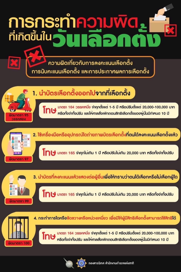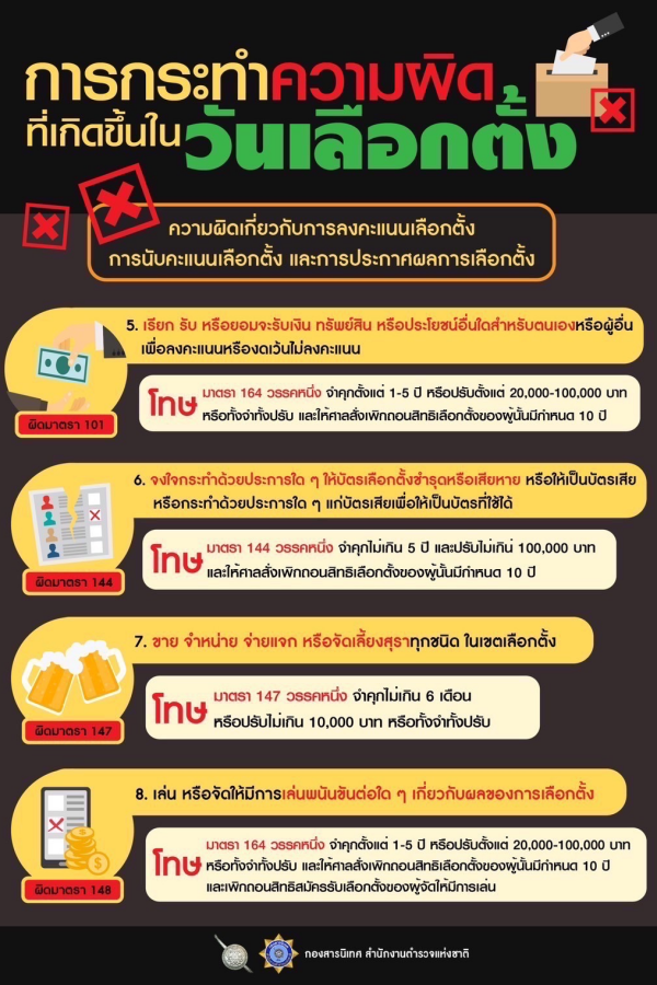 ตร. เตือน 8 ข้อ อย่าหาทำ “ในวันเลือกตั้ง” โทษหนัก ทั้งจำและปรับ