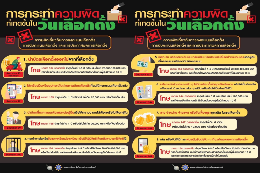 ตร. เตือน 8 ข้อ อย่าหาทำ “ในวันเลือกตั้ง” โทษหนัก ทั้งจำและปรับ
