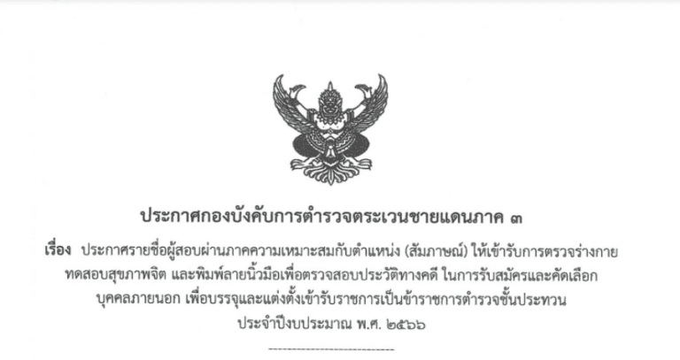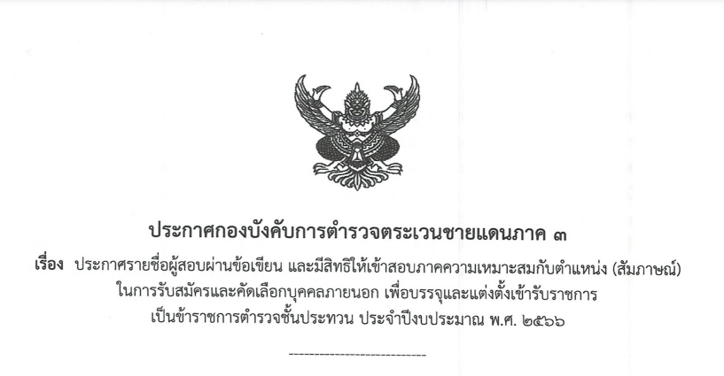 ประกาศรายชื่อผู้สอบผ่านข้อเขียนและมีสิทธิ์ให้เข้าสอบภาคความเหมาะสมกับตำแหน่ง(สัมภาษณ์)