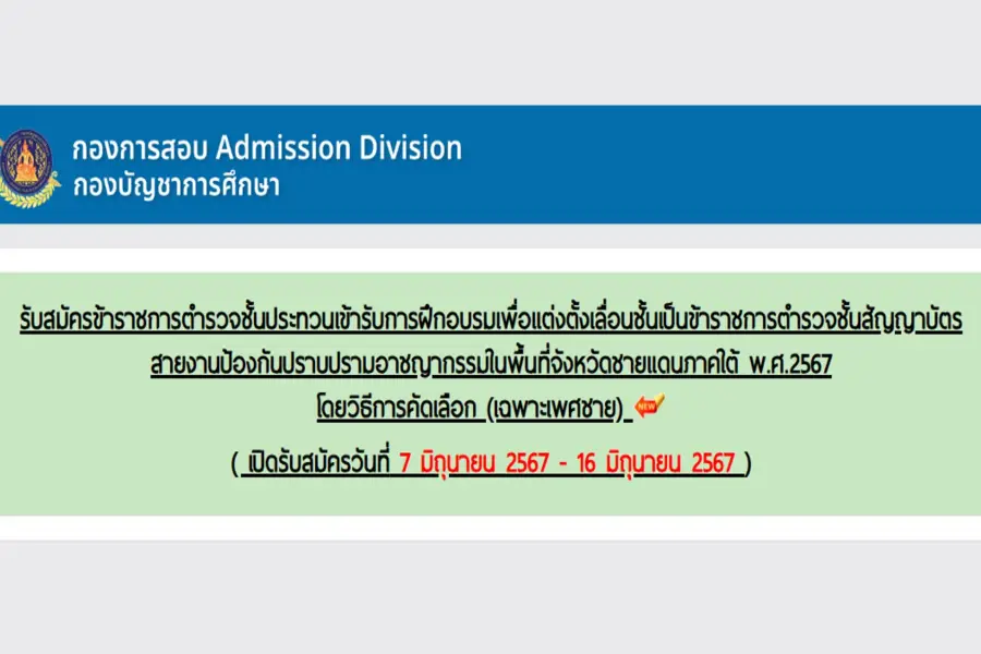 โดยจะเปิดรับสมัครระหว่างวันที่ 7 – 16 มิ.ย.67 ทางเว็บไซต์ policeadmission.thaijobjob.com