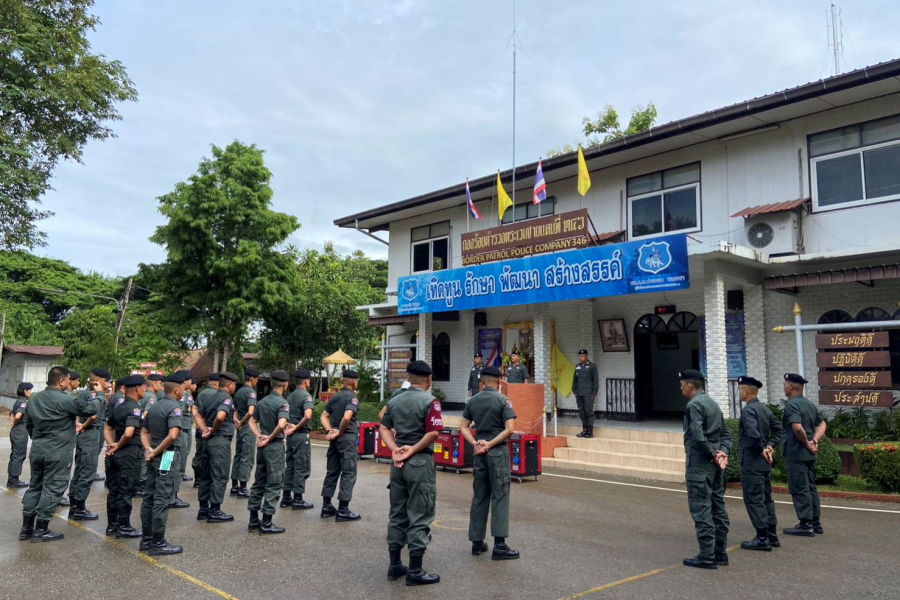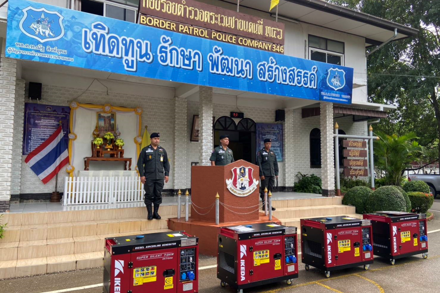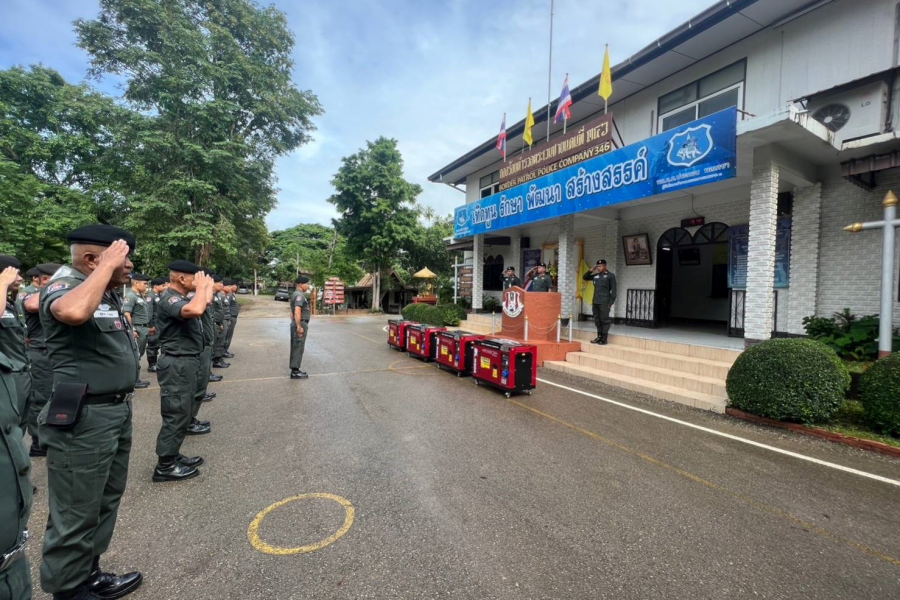 4 ก.ค.66 เวลา 09.00 น. พ.ต.อ.ศุภวัฒน์ ศรีชัยชนะ ผกก.ตชด.34 ที่ได้เดินทางมาตรวจเยี่ยมกำลังพลและมอบเครื่องกำเนิดไฟฟ้า จำนวน 4 เครื่อง ให้แก่ ร้อย ตชด.343, 345 – 347 พร้อมมอบนโยบายและได้กำชับข้อสั่งการในการปฏิบัติหน้าที่กับ ขรก.ตร.ในสังกัด บริเวณ ลานรวมพล ร้อย ตชด.346 อ.แม่สอด จ.ตาก