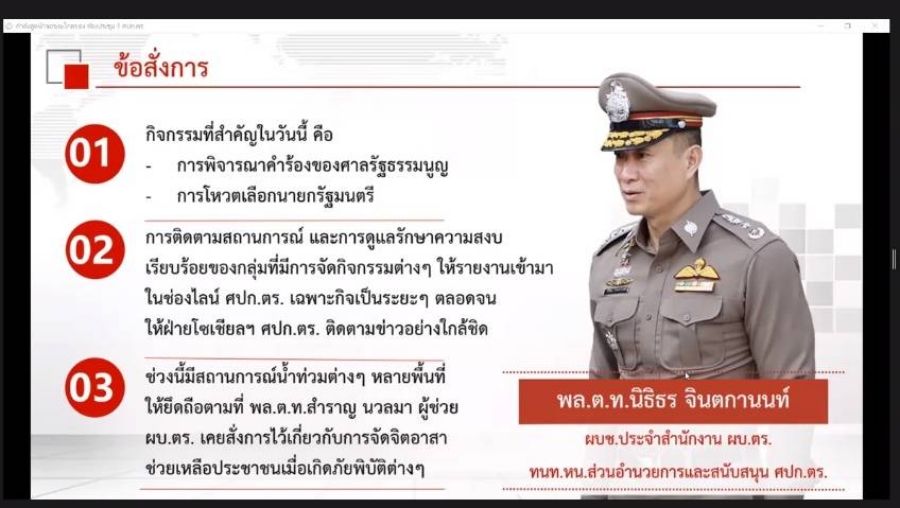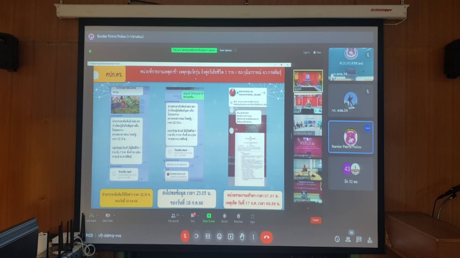 19 ก.ค. 66 เวลา 09.00 น. พ.ต.อ.ศุภวัฒน์ ศรีชัยชนะ ผกก.ตชด.34 ร่วมเฝ้าฟังการประชุมศูนย์ปฏิบัติการ สำนักงานตำรวจแห่งชาติ ครั้งที่ 200/2566 ณ ห้องประชุม ศปก.กก.ตชด.34 ในระบบการประชุมทางไกลผ่านจอภาพ โดยมี พล.ต.ท.นิธิธร จินตกานนท์ ผบช.ประจำ สง.ผบ.ตร. ประธานการประชุม