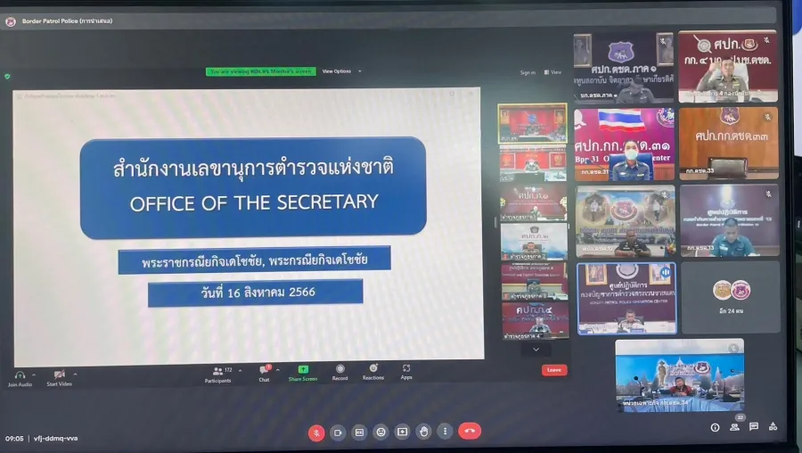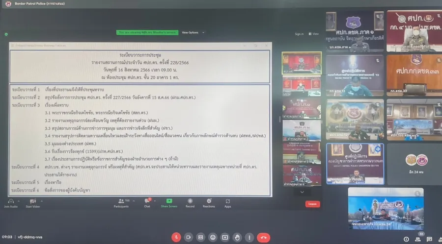 16 ส.ค. 66 เวลา 09.00 น. พ.ต.อ.ศุภวัฒน์ ศรีชัยชนะ ร่วมเฝ้าฟังการประชุมศูนย์ปฏิบัติการ สำนักงานตำรวจแห่งชาติ ครั้งที่ 228/2566 ณ ห้องประชุม ฉก.กก.ตชด.34 ในระบบการประชุมทางไกลผ่านจอภาพ โดยมี พล.ต.ท.นิธิธร จินตกานนท์ ผบช.ประจำ สง.ผบ.ตร.ประธานการประชุม