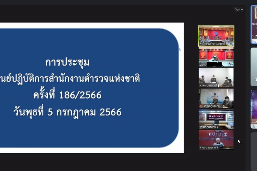 - เวลา 09.00 น. ร่วมเฝ้าฟังการประชุมศูนย์ปฏิบัติการสำนักงานตำรวจแห่งชาติ ครั้งที่ 186/2566 โดยมี พล.ต.ท.นิธิธร จินตกานนท์ ผบช.ประจำ สง.ผบ.ตร. ประธานการประชุม
