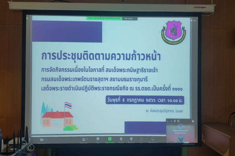 - เวลา 10.00 น. ประชุมเตรียมการรับเสด็จ สมเด็จพระกนิษฐาธิราชเจ้า กรมสมเด็จพระเทพรัตนราชสุดาฯ สยามบรมราชกุมารี เสด็จครั้งที่ 1111 ( รร.ตชด.บ้านท่ากุ่ม อ.เมือง จ.ตราด ) ณ ห้องประชุม ศปก.กก.ตชด.34 ในระบบทางไกลผ่านจอภาพ โดยมี พล.ต.ท.ณัฐ สิงห์อุดม ประธานการประชุม