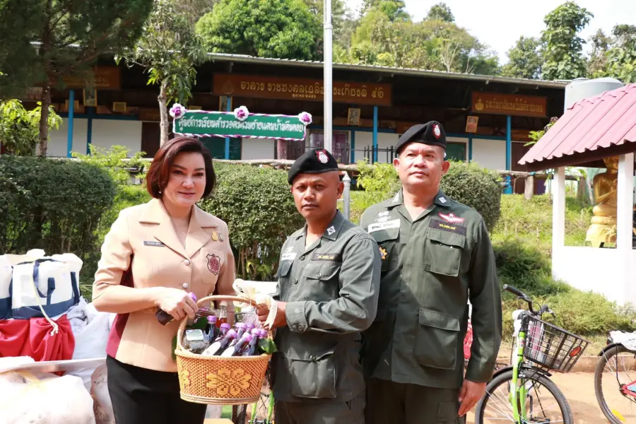 15 ม.ค.67 เวลา 10.30-12.00 น. พ.ต.อ.ศุภวัฒน์ ศรีชัยชนะ ผกก.ตชด.34 , พ.ต.ท.รัฐกร อินทนิล รอง ผกก.ตชด.34 ,ว่าที่ พ.ต.ท.ฐัตพล สายโรจน์ ผบ.ร้อย ตชด.344 พร้อมด้วย คณะครูนักเรียน ศกร.ตชด.บ้านตีนดอย,ศกร.ชาวไทยภูเขา“แม่ฟ้าหลวง”บ้านห้วยสินาคี, ศกร.ชาวไทยภูเขา“แม่ฟ้าหลวง”บ้านห้วยดอกเกี๋ยง และหน่วยงานราชการในพื้นที่ให้การต้อนรับภริยานายกรัฐมนตรี , คณะแม่บ้านรัฐมนตรี และนายกสมาคมแม่บ้านตำรวจ ณ ศกร.ตชด.บ้านตีนดอย ต.แม่หละ อ.ท่าสองยาง จว.ตาก ในภารกิจมอบเครื่องกรอบน้ำ เครื่องคอมพิวเตอร์ เครื่องปริ๊นเตอร์ จักรยาน ทีวีสี เครื่องอุปโภค บริโภค ข้าวสาร สีทาอาคาร อุปกรณ์การเรียนการสอน มอบทุนการศึกษา และเลี้ยงอาหารกลางวันนักเรียน จากนั้นทาง กก.ตชด.34 และคณะครูฯ ได้มอบของที่ระลึกให้ทางคณะฯ