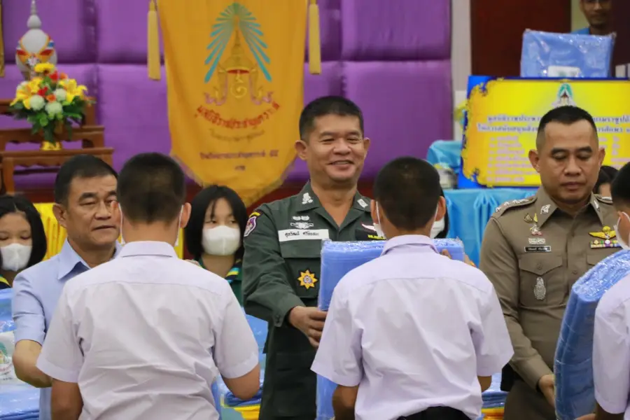 14 พ.ย. 66 เวลา 10.00 น. พ.ต.อ.ศุภวัฒน์ ศรีชัยชนะ ผกก.ตชด.34 ,พ.ต.ท.ธนาวัฒน์ เทิ้มแพงพันธุ์ รอง ผกก.ตชด.34 ร่วมพิธีมอบอุปกรณ์การเรียน ผ้าห่มกันหนาว และสิ่งของพระราชทาน แก่นักเรียนโรงเรียนราชประชานุเคราะห์ 55 จังหวัดตาก ประจำปี 2566 โดยมี นายสมชัย กิจเจริญรุ่งโรจน์ ผู้ว่าราชการจังหวัดตาก ประธานมูลนิธิราชประชานุเคราะห์ ในพระบรมราชูปถัมภ์ประจำจังหวัดตาก เป็นประธานในพิธี