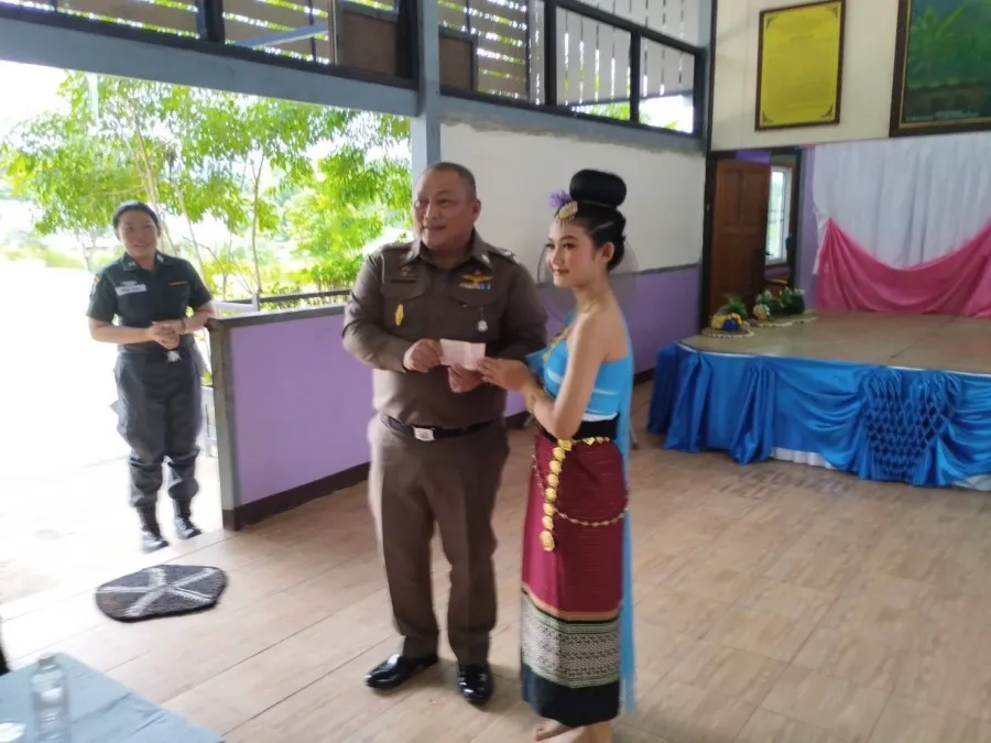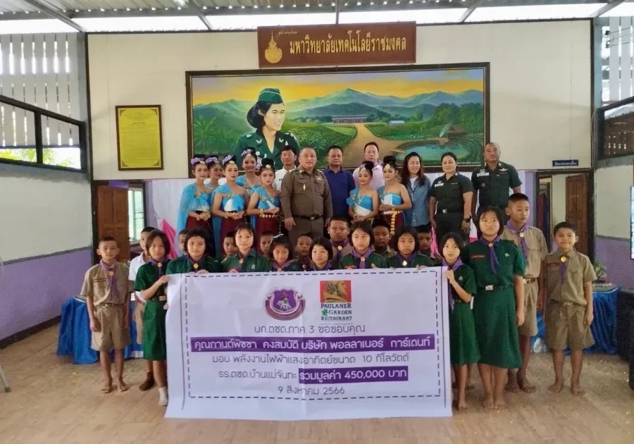 จากนั้นได้เป็นตัวแทน บริษัท พอลลาเนอร์ การ์เดนท์ มอบ อุปกรณ์ผลิตไฟฟ้าจากแสงอาทิตย์ ขนาด 10 กิโลวัตต์ มูลค่า 450,000 บาท และบริษัทเฟรชเชอร์ จำกัด มอบ ชุดนักเรียนและรองเท้า มูลค่า 110,245 บาท ให้ รร.ตชด.บ้านแม่จันทะ