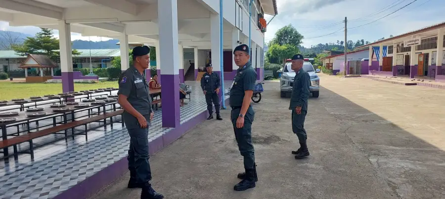 - เวลา 11.35 น. ตรวจเยี่ยม ฐานปฏิบัติการบ้านแม่กลองคี ต.โมโกร อ.อุ้มผาง จว.ตาก โดยมี ร.ต.ท.ปิยมัณฑน์ ภัคดีแสงรัตน์ ผบ.มว.ตชด.3471 พร้อม กพ. ให้การต้อนรับ