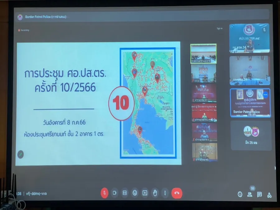 8 ส.ค.66 เวลา 13.30 น. พ.ต.ท.ธนาวัฒน์ เทิ้มแพงพันธุ์ รอง ผกก.ตชด.34, พ.ต.ท.พิจิตร ภู่ระย้า สว.กก.ตชด.34 (ขว.) เข้าร่วมเฝ้าฟังการประชุมการปฏิบัติงานป้องกันปราบปรามและแก้ไขปัญหายาเสพติด ศอ.ปส.ตร. ครั้งที่ 10/2566 ทางไกลผ่านจอภาพ (Video Conference) ณ ห้องประชุม กก.ตชด.34