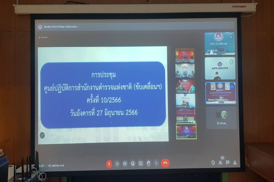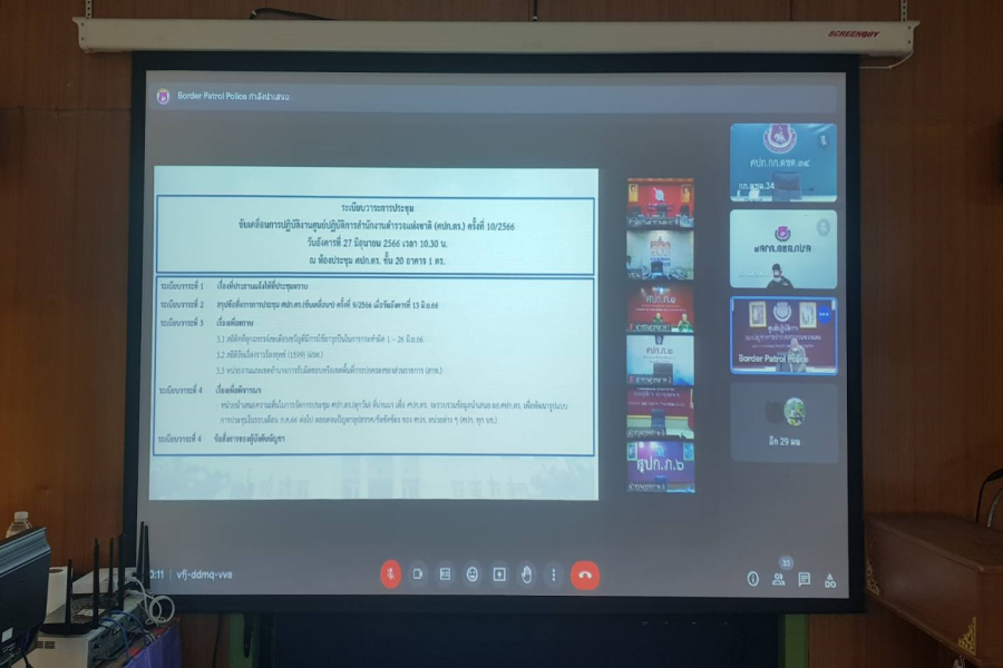 27 มิ.ย. 66 เวลา 10.30 น. พ.ต.ท.รัฐกร อินทนิล รอง ผกก.ตชด.34 ร่วมเฝ้าฟังการประชุมขับเคลื่อน ศปก.ตร. และประชุม ศปก.ตชด. ครั้งที่ 10/2566 ณ ห้องประชุม ศปก.กก.ตชด.34 ในระบบการประชุมทางไกลผ่านจอภาพ โดยมี พล.ต.ท.นิธิธร จินตกานนท์ ผบช.ประจำ สง.ผบ.ตร. ประธานการประชุม