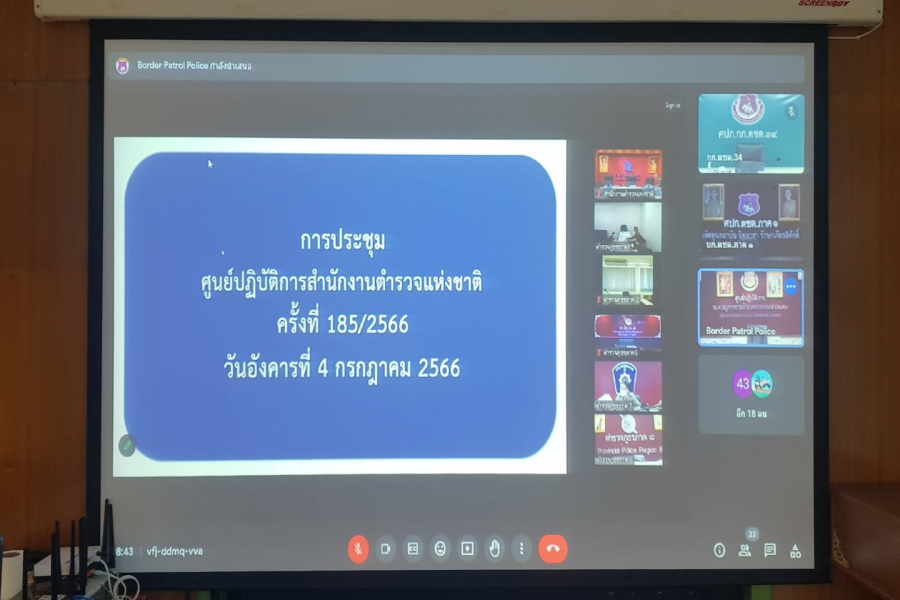 4 ก.ค. 66 เวลา 09.00 น. พ.ต.ท.รัฐกร อินทนิล รอง ผกก.ตชด.34 ร่วมเฝ้าฟังการประชุมศูนย์ปฏิบัติการสำนักงานตำรวจแห่งชาติ ครั้งที่ 185/2566 ณ ห้องประชุม ศปก.กก.ตชด.34 ในระบบการประชุมทางไกลผ่านจอภาพ โดยมี พล.ต.ต.กำพล กุศลสถาพร ผบช.สยศ.ตร. ประธานการประชุม