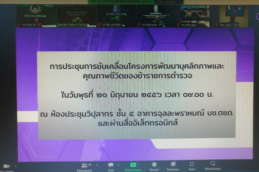 ผ่านระบบการประชุมทางไกลผ่านจอภาพ ณ ห้องประชุม ศปก.กก.ตชด.34 โดยมี พล.ต.ท.ณัฐ สิงห์อุดม ผบช.ตชด. เป็นประธานการประชุม