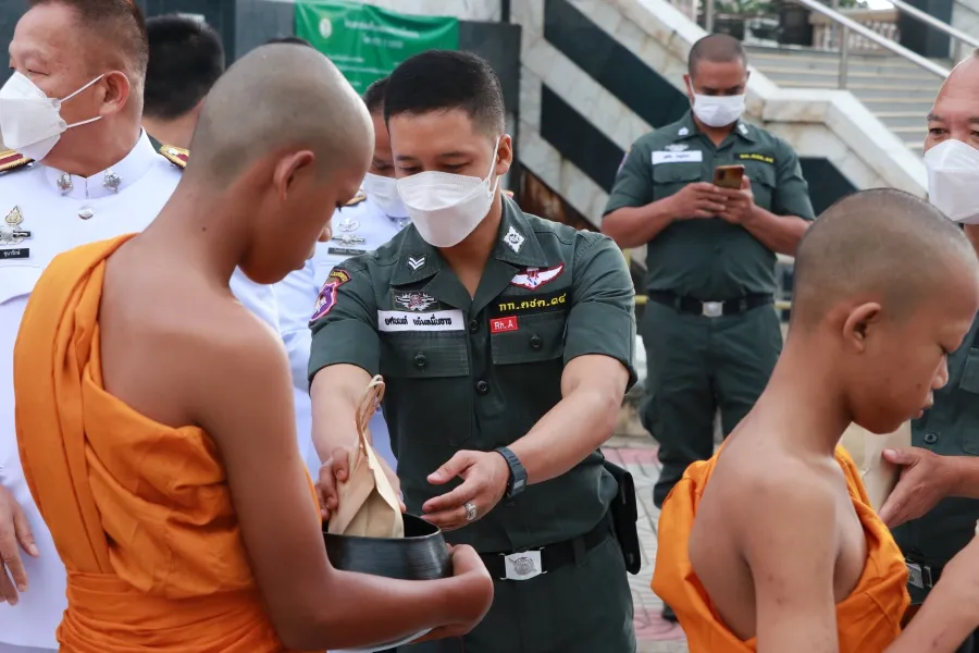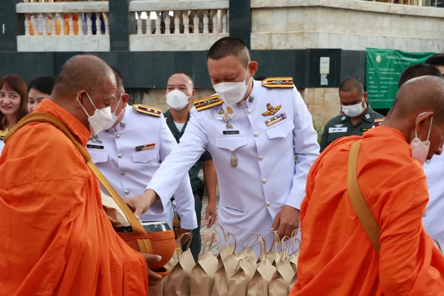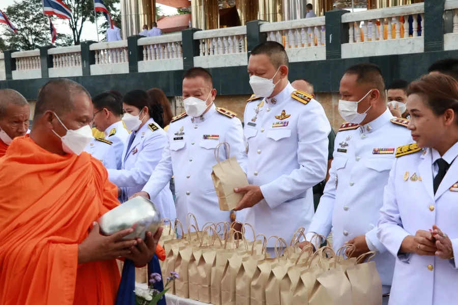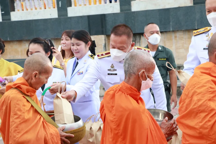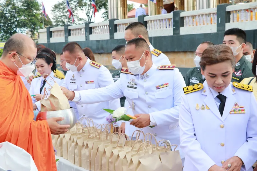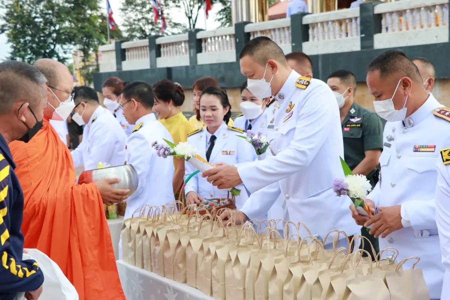 13 ต.ค.66 เวลา 07.00-08.00 น. พ.ต.ท.รัฐกร อินทนิล รอง ผกก.ตชด.34 พร้อม ขรก.ตร.ชั้นสัญญาบัตรชุดที่ 3 จำนวน 2 นาย ขรก.ตร.ชั้นประทวน จำนวน 4 นาย เข้าร่วมพิธีทำบุญตักบาตรถวายเป็นพระราชกุศล เนื่องในวันนวมินทรมหาราช 13 ตุลาคม 2566 โดยมี นายสมชัย กิจเจริญรุ่งโรจน์ ผู้ว่าราชการจังหวัดตาก เป็นประธาน ณ อาคารหอกิตติคุณ อ.เมืองตาก จว.ตาก