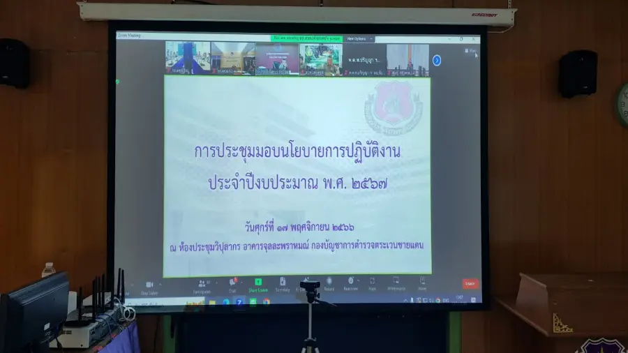 17 พ.ย. 66 เวลา 10.00 น. พ.ต.ท.รัฐกร อินทนิล รอง ผกก.ตชด.34(1), พ.ต.ท.เทพ มงคล รอง ผกก.ตชด.34(2), พ.ต.ท.ธนาวัฒน์ เทิ้มแพงพันธุ์ รอง ผกก.ตชด.34(3) และ สว.กก.ตชด.34 (ธกวส.- กง.), ผบ.ร้อย ตชด.341-343 ร่วมรับฟังการมอบนโยบายการปฏิบัติงาน ประจำปีงบประมาณ พ.ศ.2567 ของ ผบช.ตชด. ณ ห้องประชุม ศปก.กก.ตชด.34 ในระบบการประชุมทางไกลผ่านจอภาพ โดยมี พล.ต.ท.ยงเกียรติ มนปราณีต ผบช.ตชด.