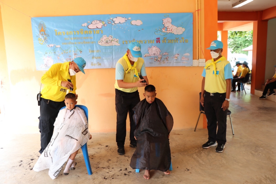 28 ก.ค. 66 พ.ต.ท.ธนาวัฒน์ เทิ้มแพงพันธุ์ รอง ผกก.ตชด.34 พร้อมข้าราการตำรวจสังกัด กก.ตชด.34 ได้แก่ พ.ต.ท.นิกร ขุนทอง สว.กก.ตชด.34 (ผงป.),ร.ต.ต.นรินทร์ ดอนดง รอง สว.(ป) กก.ตชด.34 และ ด.ต.กันทการณ์ ใจปวน ผบ.หมู่ กก.ตชด.34 ร่วมกิจกรรมโครงการน้ำพระทัยพระราชทานส่วนภูมิภาค สภาสังคมสงเคราะห์แห่งประเทศไทย ในพระบรมราชูปถัมภ์ เนื่องในโอกาสวันเฉลิมพระชนพรรษา พระบาทสมเด็จพระเจ้าอยู่หัว และได้จัดจุดบริการตัดผมให้กับนักเรียนชายโรงเรียนราชประชานุเคราะห์ 55 โดยมี นายสมชัย กิจเจริญรุ่งโรจน์ ผู้ว่าราชการจังหวัดตาก เป็นประธาน