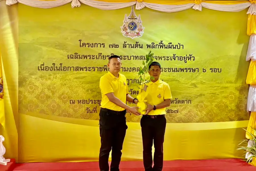 14 มิถุนายน 2567 เวลา 12.30-13.40 น. พ.ต.ท.รัฐกร อินทนิล รอง ผกก.ตชด.34/จิตอาสา 904 รหัส 33A-146 พร้อมด้วย ด.ต.ศักดิ์ศรี มีสุข,ส.ต.ท.ศุภชัย คนเพียร ผบ.หมู่ กก.ตชด.34(จอส.,กร.) ร่วมกิจกรรมจิตอาสาพิธีมอบกล้าไม้ ภายใต้“โครงการ 72 ล้านต้น พลิกฟื้นผืนป่า เฉลิมพระเกียรติพระบาทสมเด็จพระเจ้าอยู่หัว เนื่องในโอกาสพระราชพิธี มหามงคลเฉลิมพระชนมพรรษา 6 รอบ 28 กรกฎาคม 2567 โดยมี นายบุญช่วย หอมยามเย็น รอง ผวจ.ตาก เป็นประธานพิธีมอบกล้าไม้ฯ ให้กับหัวหน้าส่วนราชการ ทหาร ตำรวจ อำเภอ อัยการ สถานีวิทยุกระจายเสียง สาธารณสุข ขนส่ง สรรพากร ทางหลวง องค์กรปกครองส่วนท้องถิ่น สถานศึกษาฯลฯ รวม 72 หน่วยงาน นำไปปลูกในพื้นที่รับผิดชอบของแต่หน่วยงาน เพื่อเป็นการฟื้นฟูและรักษาสภาพป่าต้นน้ำ รวมถึงการคืนสภาพโครงสร้างระบบนิเวศน์ให้ผืนป่าทั่วประเทศ โดยรวมพลังจิตอาสาทุกภาคส่วนในการร่วมกัน ปลูกป่าและบำรุงรักษาต้นไม้เพื่อคืนธรรมชาติให้มีความสมบูรณ์ อันเป็นการถวายความจงรักภักดีแด่พระบาทสมเด็จพระเจ้าอยู่หัวฯ