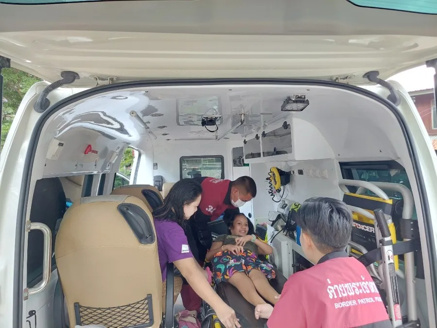 20 – 21 ต.ค.66 จ.ส.ต.หญิงศิรินภาวรรค อัตถาวี จนท.ผบ.มว.ตชด.341 พร้อมพวกจำนวน 3 นาย ใช้รถตู้พยาบาล รยบ.หมายเลขโล่ 40642 ได้เดินทางออกจากที่ตั้งเพื่อ ปบ.หน้าที่ รับ ด.ญ.อรสินี โพธิ์ตุ่น อายุ 10 ปี คนไข้ในพระบรมราชานุเคราะห์ ป่วยเป็นโรคข้อติดแข็งแต่กำเนิด จาก บ้านเลขที่ 25/2 ซอย ร่วมพัฒนา ต.เกยไชย อ.ชุมแสง จว.นครสวรรค์ (พร้อมผู้ดูแล) เพื่อเข้ารับการรักษา ที่ บช.ตชด เพื่อนำส่งแผนกคนไข้กองราชเลขานุการในพระองค์สมเด็จพระบรมราชินีนาถ พระบรมราชนนีพันปีหลวง