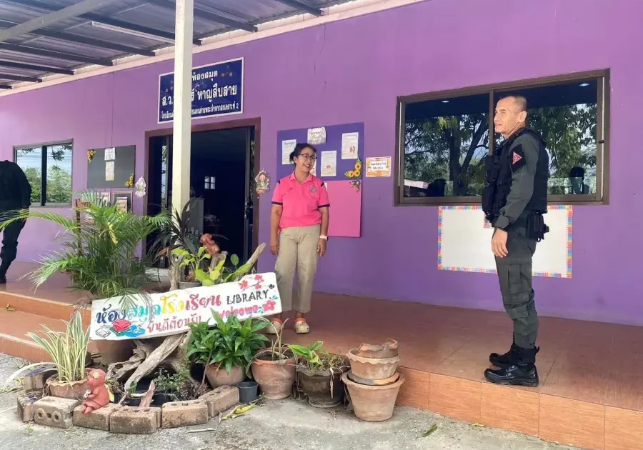 4 เม.ย.67 เวลา 09.00 – 11.30 น. ร้อย ตชด.343 จัดให้ ร.ต.ต.พิษณุ เอี่ยมแก้ว หน.ฉก.ปพ.พร้อม กพ.รวม 5 นาย สนธิกำลังร่วมกับหน่วยงานทางปกครองปฏิบัติหน้าที่ลาดตระเวนเพื่อดูแลรักษาความสงบเรียบร้อยของโรงเรียน และความปลอดภัยบุคลากรทางการศึกษา ในพื้นที่จำนวน 2 โรงเรียนประกอบด้วยดังนี้