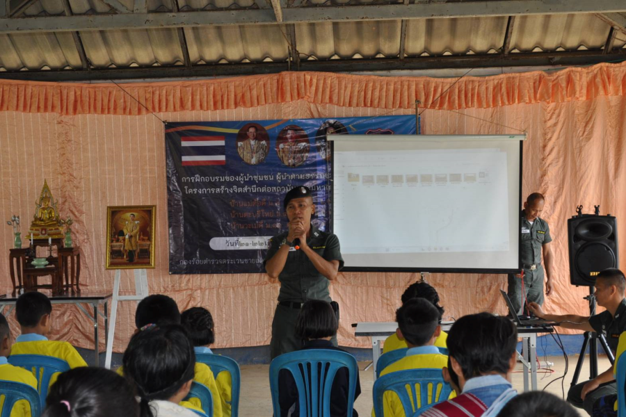 21 มี.ค.66 เวลา 08.30 น. พ.ต.ต.ฐัตพล สายโรจน์ ผบ.ร้อย ตชด.344เป็นประธานเปิดการฝึกอบรม กิจกรรมตามโครงการสร้างจิตสำนึกต่อสถาบันพระมหากษัตริย์ ประจำปี 2566 ณ. ศนูย์พัฒนาเด็กเล็กบ้านแม่ต้อคี หมู่ ๓ ตำบล แม่ต้าน อำเภอท่าสองยาง จังหวัดตาก ฝึกอบรม“ผู้นำชุมชน ผู้นำตามธรรมชาติ ประชาชน และเยาวชน ตามโครงการสร้างจิตสำนึกต่อสถาบันพระมหากษัตริย์ ปี 2566” มี ร.ต.ต.สมจิตต์ สายชลคีรี ผบ.มว.มชส.ร้อย ตชด.344 พร้อม กพ.มว.มชสฯ จนท.กร.ฯ รวม 4 นาย เป็นวิทยากรในการฝึกอบรม มีผู้นำชุมชน/ผู้นำตามธรรมชาติ/ประชาชน และเยาวชน จำนวน 60 คน หัวข้อในการฝึกอบรม ฯ ดังนี้