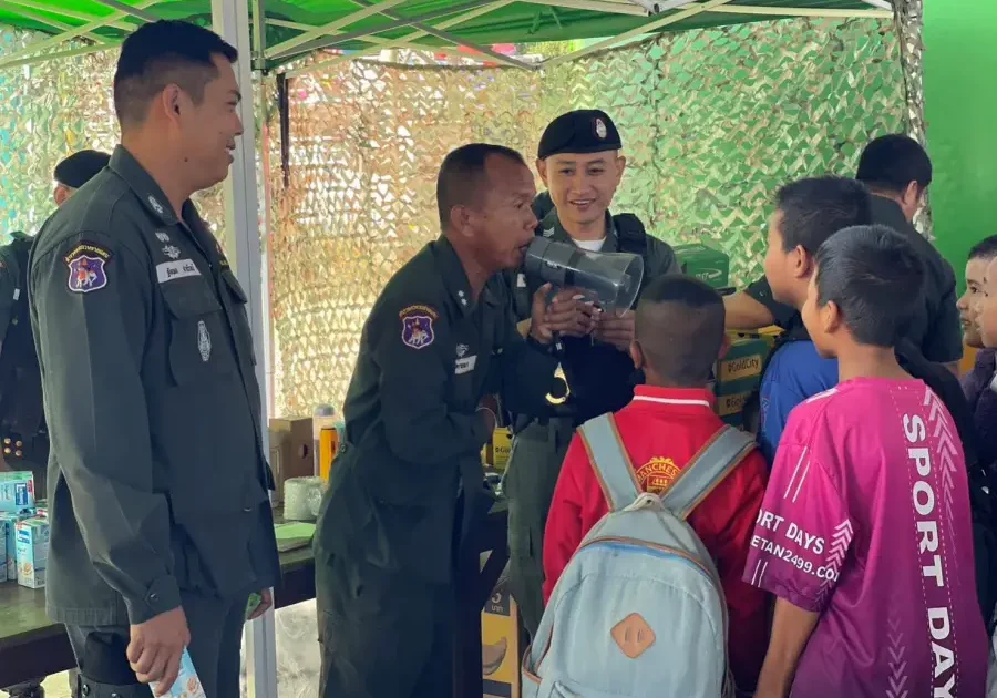 13 ม.ค.67 เวลา 08.00-12.00 น. ว่าที่ พ.ต.ท.ฐัตพล สายโรจน์ ผบ.ร้อย ตชด.344 พร้อม ขรก.ตร.ร้อย ตชด.344 รวม 12 นาย เข้าร่วมกิจกรรม วันเด็กแห่งชาติ ประจำปี 2567 ของเทศบาลตำบลแม่ต้าน ณ โดมกิจกรรมสวนสุขภาพ เทศบาล ตำบลแม่ต้าน อ.ท่าสองยาง จ.ตาก โดยมีกิจกรรมดังนี้ ได้นำอาวุธปืนประจำกาย/ประจำหน่วย มาแสดง แจกไอศกรีม/ขนม เล่นเกมส์ มีเด็กนักเรียน เยาวชน ประชาชน เข้าร่วมกิจกรรม ประมาณ 500 คน