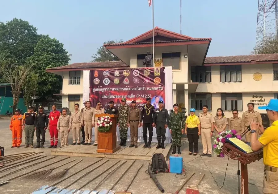 28 ก.พ.67 เวลา 08.30-09.10 น. ร้อย ตชด.344 จัดให้ ร.ต.อ.ธวัช ปั้นแหน่ง รอง ผบ.ร้อย ตชด.344 พร้อมด้วยข้าราชการตำรวจ ร้อย ตชด.344 รวม 18 นาย ร่วมกิจกรรม KICK OFF การแก้ไขปัญหาหมอกควัน ไฟป่า และฝุ่นละอองขนาดเล็ก (PM 2.5) ประจำปี 2567 ณ บริเวณลานหน้าที่ว่าการอำเภอท่าสองยาง จว.ตาก เพื่อเป็นการรณรงค์ ประชาสัมพันธ์ และทำความเข้าใจกับประชาชนในพื้นที่ อำเภอท่าสองยาง จังหวัดตาก ให้ตระหนักและเห็นความสำคัญในการแก้ไขปัญหาหมอกควัน ไฟป่า และฝุ่นละอองขนาดเล็ก (PM 2.5) โดยมี นายอัครพันธุ์ พูลศิริ นายอำเภอท่าสองยาง เป็นประธาน โดยมีผู้เข้าร่วมกิจกรรม 250 คน