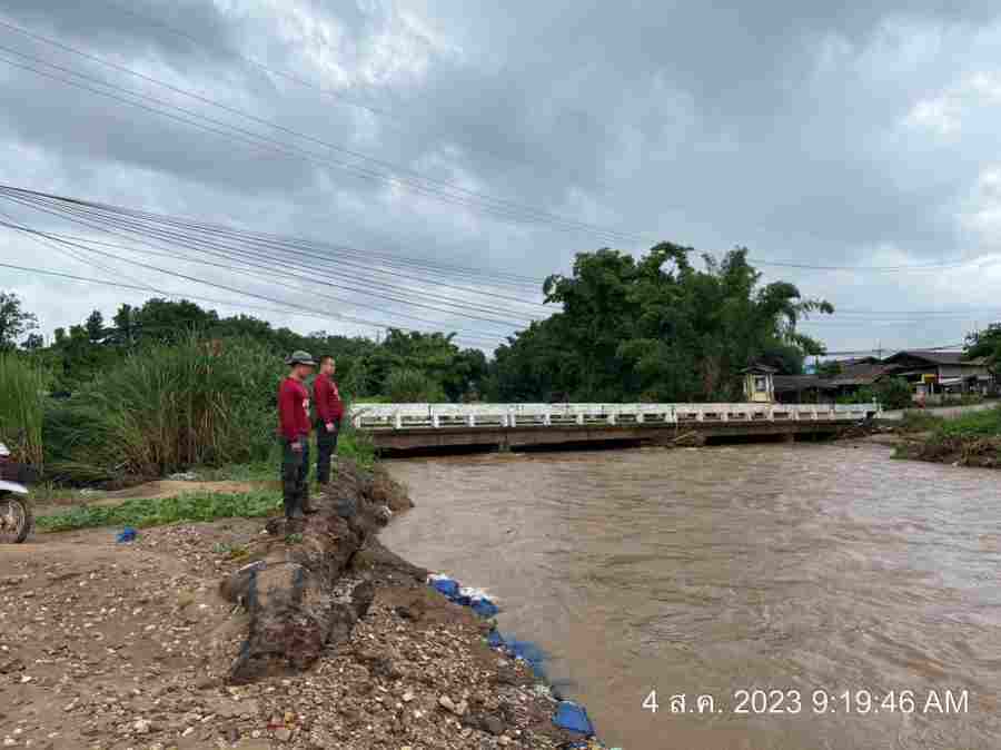 4 ส.ค.66 เวลา 09.00-12.30 น. ด.ต.บรรลือ วิชาดี พร้อมกำลังพลชุดช่วยเหลือผู้ประสบภัย รวม 5 นาย ออกสำรวจระดับน้ำบริเวณลำห้วย พื้นที่ หมู่ 1,2 ต.แม่หละ อ.ท่าสองยาง จว.ตาก พร้อมทั้งร่วมกับ ชุด ชรบ.บ้านแม่หละยาง กรอกกระสอบทราย เสริมบริเวณคอสะพาน เพื่อป้องกันน้ำเซาะกัดกร่อน