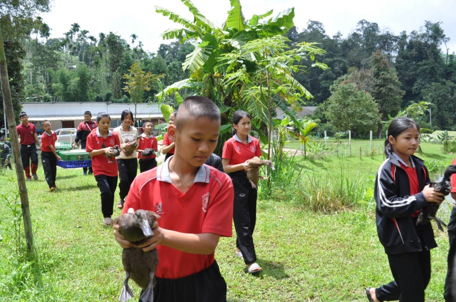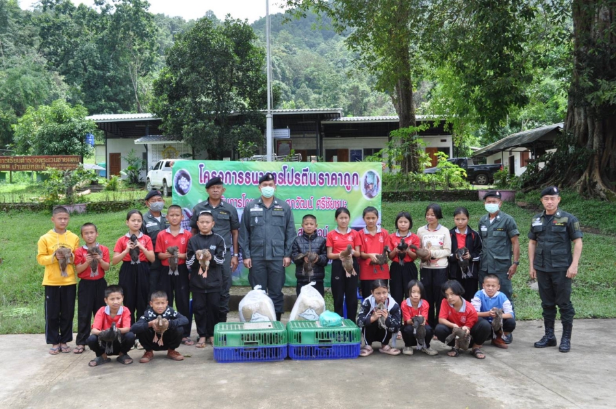 31 ส.ค.66 เวลา 09.00-13.00 น. พ.ต.ต.ฐัตพล สายโรจน์ ผบ.ร้อย ตชด.344 พร้อมด้วย ขรก.ตร.ร้อย ตชด.344 รวม 5 นาย ตรวจเยี่ยม ศกร.ตชด.บ้านแม่หละคี ต.แม่หละ อ.ท่าสองยาง จว.ตาก และได้มอบเป็ดไข่พันธุ์กากีแคมแบลล์จำนวน 50 ตัว เพื่อเป็นแหล่งโปรตีนให้กับเด็กนักเรียนและขยายพันธุ์ต่อไปและได้ให้ ร.ต.ต.ธนูดิฐ กลางธนรัก เป็นวิทยากรการทำอาหารหมักหยวกกล้วย เพื่อให้เป็ดและไก่ที่เลี้ยงไว้ใน โรงเรียนกินเป็นอาหาร ในโครงการธนาคารโปรตีนราคาถูกโดยมีเด็กนักเรียนเข้าอบรมจำนวน 34 คน