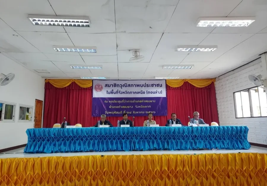 24 ส.ค.66 เวลา 13.00-16.30 น. ร.ต.อ.ธวัช ปั้นเหน่ง รอง ผบ.ร้อย ตชด.344 เข้าร่วมประชุมตามโครงการสมาชิกวุฒิสภาพบประชาชนในพ้นที่จังหวัดภาคเหนือ (ตอนล่าง) โดยมี นายสุรพล วงศ์สุขพิศาล รองผู้ว่าราชการจังหวัดตาก ให้การต้อนรับ พลอากาศเอก อดิศักดิ์ กลั่นเสนาะ สมาชิกวุฒิสภา (รองที่ปรึกษาคณะกรรมการ) พร้อมคณะ ณ หอประชุมแม่ต้านประชาสรรค์ ที่ว่าการอำเภอท่าสองยาง อ.ท่าสองยาง จว.ตาก มีผู้เข้าร่วมประชุม จำนวน 100 คน
