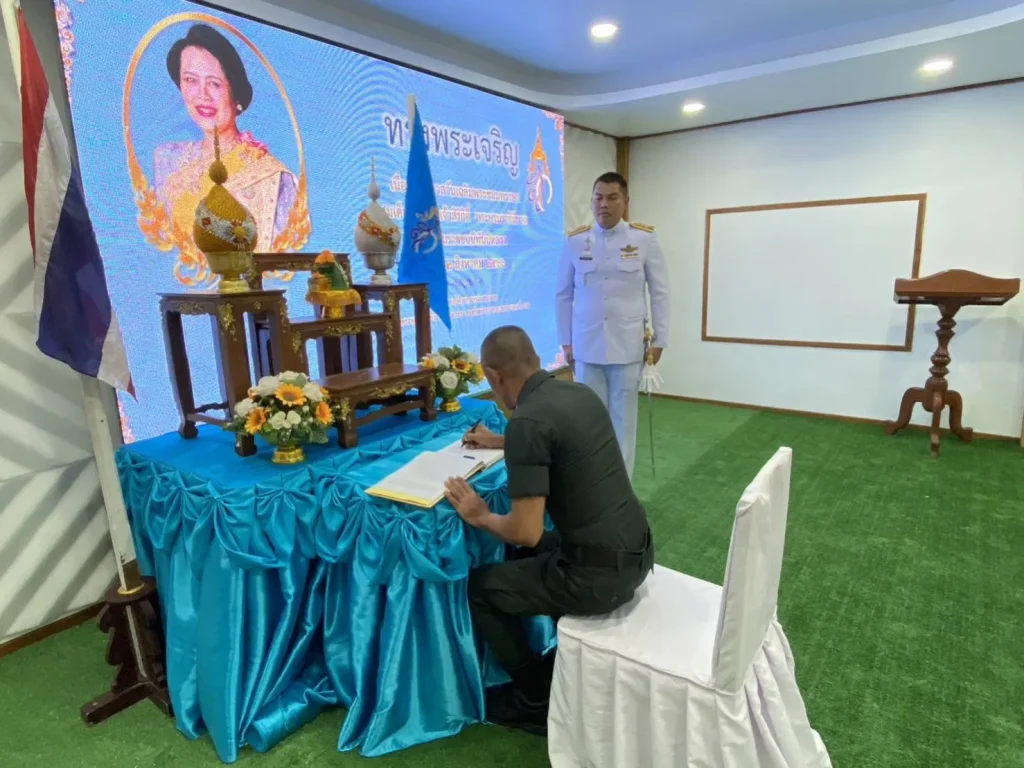 11 ส.ค.66 เวลา 13.30-13.50 น. พ.ต.ต.ฐัตพล สายโรจน์ ผบ.ร้อย ตชด.344 นำ ขรก.ตร. ร้อย ตชด.344 จัดพิธีถวายพระพรชัยมงคล และร่วมลงนามถวายพระพรชัยมงคล สมเด็จพระนางเจ้าสิริกิต์ พระบรมราชินีนาถ พระบรมราชชนนีพันปีหลวง เนื่องในโอกาสวันเฉลิมพระชนมพรรษา 12 สิงหาคม 2566 ณ ห้องประชุม ศปก.ร้อย ตชด.344 ต.แม่ต้าน อ.ท่าสองยาง จว.ตาก