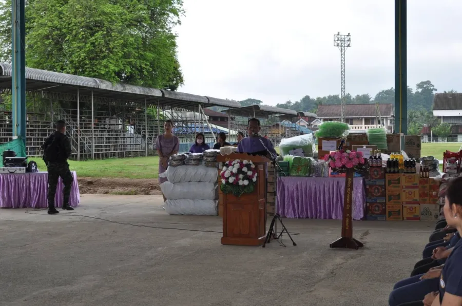 1 ก.ย.66 เวลา 08.40-09.45 น. พ.ต.ต.ฐัตพล สายโรจน์ ผบ.ร้อย ตชด.344 พร้อมด้วย ข้าราขการครู ตชด./ศกร.ตชด. จนท.ขรก.ตร.ร้อย ตชด.344 รวม 20 นาย เข้าร่วมพิธีมอบถังน้ำและสิ่งของอุปโภคบริโภค ให้กับ รร.ฯ ในโครงการตามพระราชดำริฯ ในพื้นที่ อ.ท่าสองยาง จ.ตาก ณ อาคารอเนกประสงค์เทศบาลตำบลแม่ต้าน อ.ท่าสองยาง จว.ตาก โดยมียงยุทธ สุขศิริ เป็นประธานในพิธีการมอบถังน้ำและสิ่งของอุปโภคบริโภค