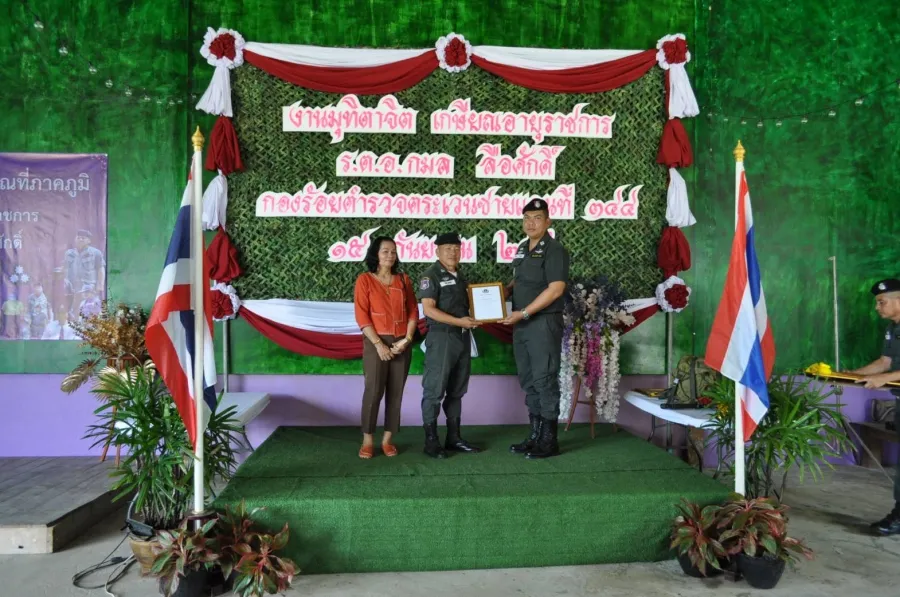 15 ก.ย.66 เวลา 15.00-15.40 น. พ.ต.ต.ฐัตพล สายโรจน์ ผบ.ร้อย ตชด.344 ได้ดำเนินการจัดงานแสดงมุทิตาจิตให้กับ ข้าราชการตำรวจ ร้อย ตชด.344 ที่ครบเกษียณอายุราชการ สิ้นปีงบประมาณ พ.ศ.2566 จำนวน 1 นาย คือ ร.ต.อ.กมล ลือศักดิ์ รอง สว.(ป.) กก.ตชด.34 ณ อาคารคลาสสิคฮอล์ล ร้อย ตชด.344 โดยมีข้าราชการตำรวจ ร้อย ตชด.344 เข้าร่วมงานฯ จำนวน 50 นาย