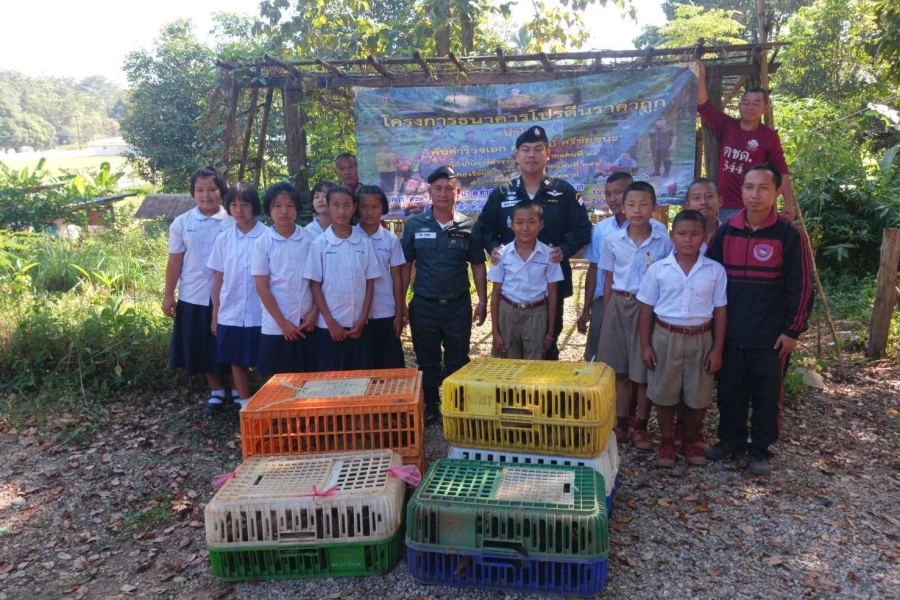 ร้อย ตชด.344 : โครงการธนาคารโปรตีนราคาถูก มอบพันธุ์เป็ดไข่ ศกร.ตชด.บ้านแม่ละนา