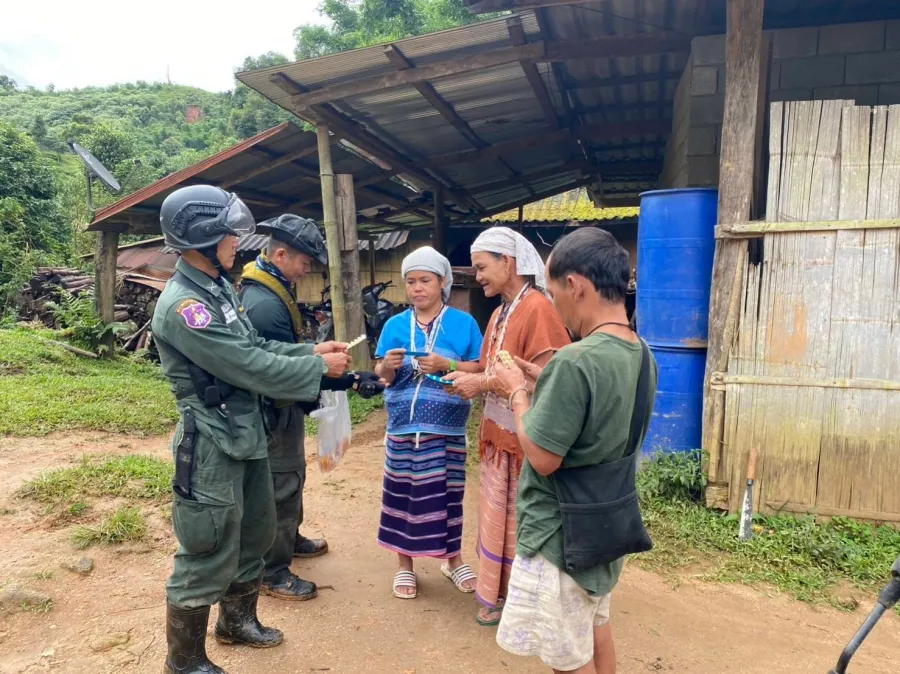 17-21 ก.ย.66 ร.ต.ต.สมจิตต์ สายชลคีรี พร้อม กพ.ร้อย ตชด.344 รวม 5 นาย ดำเนินการตามโครงการป้องกันและยับยั้งการแพร่กระจายพื้นที่ปลูกฝิ่น ปี 2566 พื้นที่เป้าหมาย บ้านทีหลึค, บ้านโจะเก้ปู่ ม.13 ต.ท่าสองยาง จว.ตาก , บ้านขุนสอง ม.11 ต.ยางเปียง อ.อมก๋อย จว.เชียงใหม่ ได้พบผู้นำชุมชน ครู ประชาชน และเยาวชน โดยได้ทำประชาคมลงมติร่วมกันให้หมู่บ้านปลอดยาเสพติด และขอความร่วมมือให้สอดส่องดูแล, ให้ความรู้เกี่ยวกับพิษภัยของยาเสพติด(ฝิ่น) พร้อมเตือนไม่ให้ยุ่งเกี่ยวกับยาเสพติด และดำเนินการตั้งจุดตรวจ ออก ลว.เดินสำรวจไร่ฝิ่นตามพิกัด พบปะพูดคุยและแจกจ่ายยาให้กับประชาชน