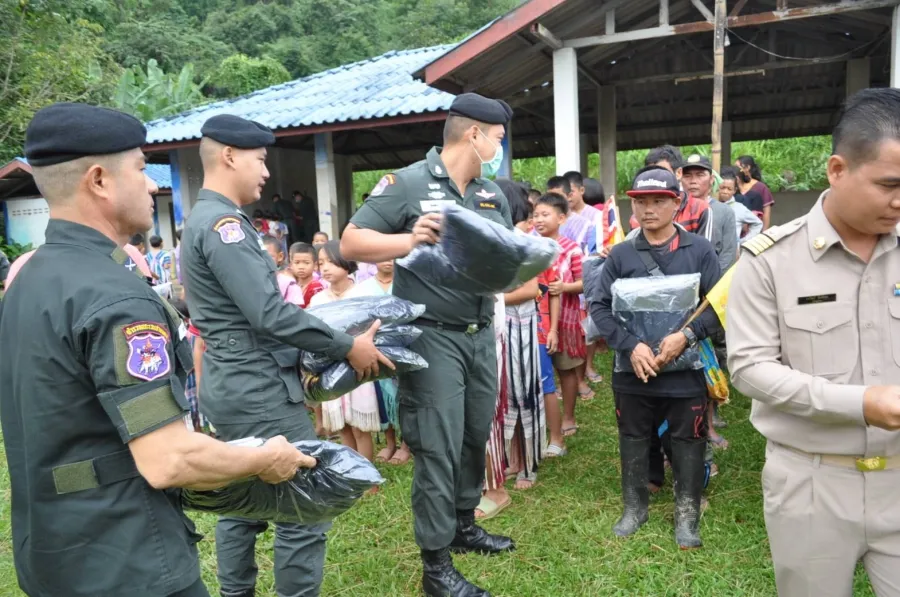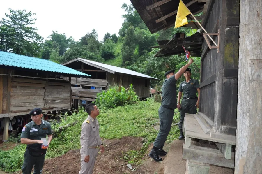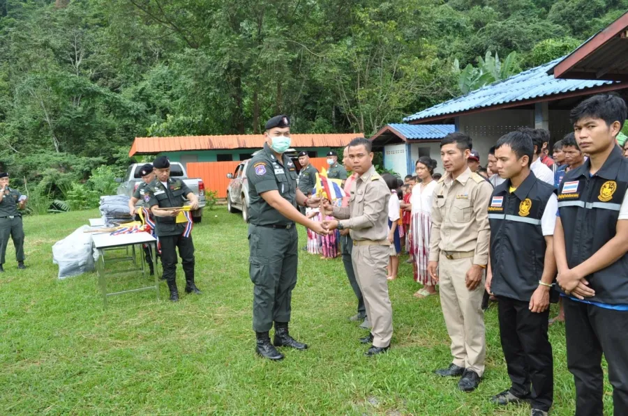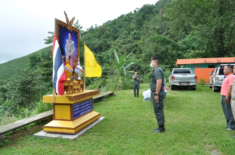 29 ส.ค.66 เวลา 08.00-10.20 น. พ.ต.ต.ฐัตพล สายโรจน์ ผบ.ร้อย ตชด.344 ดำเนินการมอบซุ้มเฉลิมพระเกียรติตามโครงการสร้างจิตสำนึกต่อสถาบันพระมหากษัตริย์ ไตรมาสที่ 3–4 ประจำปีงบประมาน 2566 ในหมู่บ้านเป้าหมายใหม่ ณ ศูนย์การเรียนชุมชนชาวไทยภูเขา”แม่ฟ้าหลวง” บ้านขุนแม่ต้อคี หมู่ที่ 3 ต.แม่ต้าน อ.ท่าสองยาง จว.ตาก โดยมีนายธนวัฒน์ นันทัสเจ ผู้ใหญ่บ้าน ม.3 นายยศพล สิงห์นรามัย สมาชิก อบต.แม่ต้าน นายสาทิตย์ เจษฎาทุลอนุชิต ครูศูนย์การเรียนชุมชนชาวไทยภูเขาบ้านขุนแม่ต้อคี และตัวแทนผู้ใหญ่บ้าน หมู่ที 4–10 ประชาชนในพื้นที่ร่วมรับมอบซุ้มและประดับธงชาติ/ธงตราสัญญาลักษณ์ ตามบ้านเรือนประชาชน และได้ทำการมอบผ้าห่มให้กับประชาชนที่มาร่วมประมาณ 60 คน