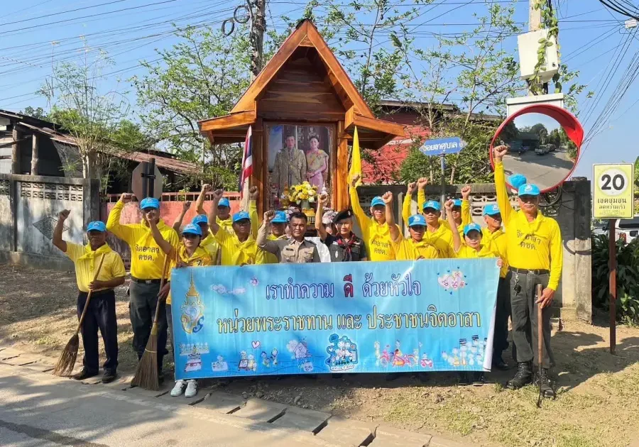 13 มี.ค. 67 เวลา 09.00 น. ร้อย ตชด.345 จัดให้ ร.ต.อ.นราวิชญ์ มณีฝั้น รอง ผบ.ร้อย ตชด.345 พร้อมกำลังพล มว.มชส. ดำเนินการส่งมอบซุ้มประดิษฐานพระบรมฉายาลักษณ์พระบาทสมเด็จพระปรเมนทรรามาธิบดีศรีสินทรมหาวชิราลงกรณ พระวชิรเกล้าเจ้าอยู่หัว, สมเด็จพระนางเจ้าสุทิดา พัชรสุธาพิมลลักษณ พระบรมราชินี พร้อมทั้งได้ร่วมกันทำกิจกรรมจิตอาสาพัฒนา ทำความสะอาด ปรับภูมิทัศน์บริเวณข้างทางสาธารณะ ทำความสะอาดบริเวณโดยรอบศาลาอเนกประสงค์ และรณรงค์ประดับธงชาติ ธงตราสัญลักษณ์ เฉลิมพระเกียรติพระบาทสมเด็จพระปรเมนทรรามาธิบดีศรีสินทรมหาวชิราลงกรณ พระวชิรเกล้าเจ้าอยู่หัว ณ พื้นที่หมู่บ้านโครงการสร้างจิตสำนึกฯ ประจำปีงบประมาณ 2567 บ.แม่จะเราสองแคว ม.2, บ.สันรวมใจ ม.10 ต.แม่จะเรา อ.แม่ระมาด จว.ตาก มีผู้เข้าร่วมกิจกรรมประมาณ 60 คน