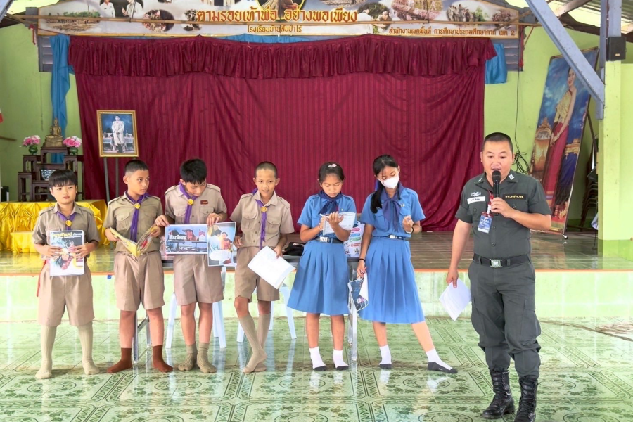 16 ก.ค. 68 เวลา 13.30 – 15.30 น. จ.ส.ต.ภูเบศธ์ กันเอี้ยง ผบ.หมู่ กก.ตชด.34/ครูตำรวจแดร์ (D.A.R.E. ประเทศไทย) ร้อย ตชด.345 เข้าทำการอบรมนักเรียนโรงเรียนบ้านสันป่าไร่ ม.5 ต.พระธาตุ อ.แม่ระมาด จว.ตาก ชั้น ป.5 และ ป.6 จำนวน 24 คน ในบทที่ 3 เรื่อง “ม่านควัน”
