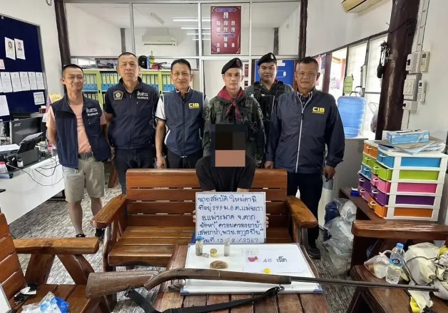 13 ก.พ. 67 เวลา 07.30 – 09.00 น. ร.ต.อ.ภูวนาถ กองคำ ผบ.มว.ตชด.3452/หน.ชปข.ร้อย ตชด.345 ร่วมกับ สภ.แม่ระมาด, จนท.ตำรวจ ส.ทท.3 กก.3 บก.ทท.2, จนท.ตำรวจ กก.4 บก.ปทส, จนท.ทหารพราน 3501 และ จนท.ทหารพราน 3504 ดำเนินการปิดล้อมตรวจค้นพื้นที่เป้าหมาย ตามหมายค้นศาลจังหวัดแม่สอดที่ ค. 10/2567 ลงวันที่ 12 ก.พ. 2567