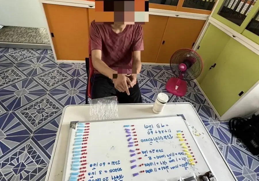 (2) ฝิ่นดิบ (น้ำหนักรวมหีบห่อ) 79.7 กรัม - โดยกล่าวหาว่า : “มียาเสพติดให้โทษประเภท 1 (ยาบ้าหรือเมทแอมเฟตามีน) ไว้ในครอบครองโดยมีไว้เพื่อจำหน่าย โดยกระทำเพื่อการค้าโดยผิดกฎหมาย, มียาเสพติดให้โทษประเภท 2 (ฝิ่นดิบ) ไว้ในครอบครองโดยผิดกฎหมาย, เสพยาเสพติดให้โทษประเภท 1 (เมทแอมเฟตามีน) โดยผิดกฎหมาย, เสพยาเสพติดให้โทษประเภท 2 (มอร์ฟีน) โดยผิดกฎหมาย”