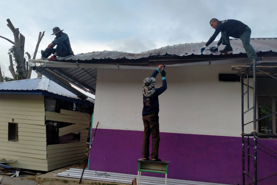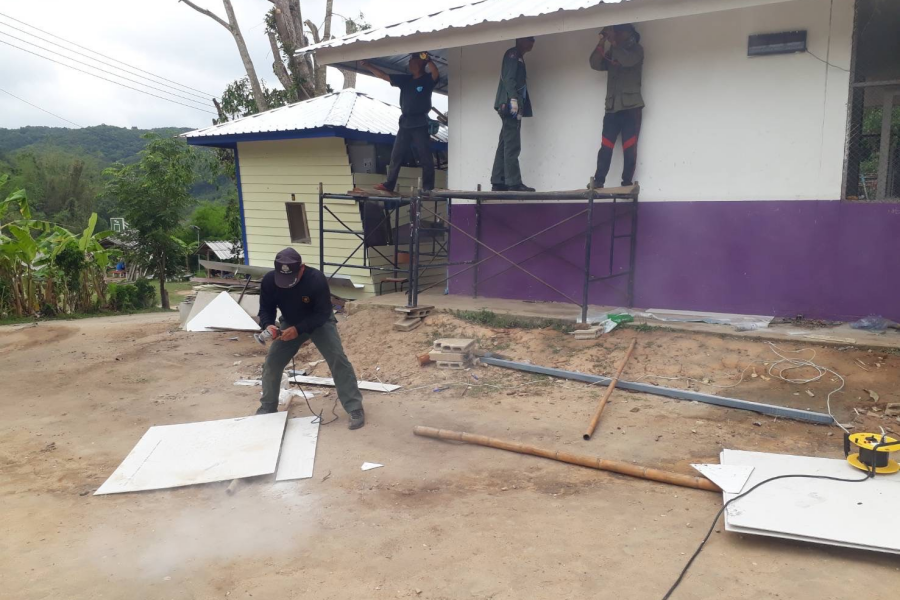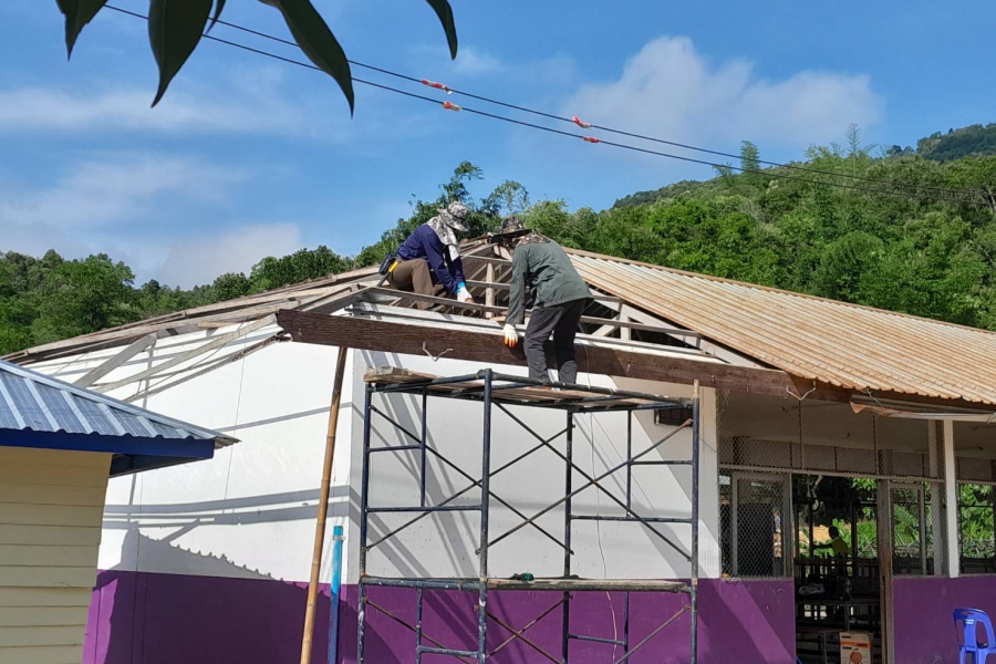 6-8 มิ.ย.66 ร.ต.อ.เสวก แสนปัญญา รอง สว.(ป.) กก.ตชด.34 พร้อมกำลังพลชุดช่าง ร้อย ตชด.345 รวม 5 นาย เข้าดำเนินการซ่อมแซมอาคารโรงอาหาร ที่เสียหายจากเหตุพายุฤดูร้อนพัดต้นไม้ล้มทับอาคาร เมื่อวันที่ 10 พ.ค.66 ณ รร.ตชด.หม่อมราชวงศ์เฉลิมลักษณ์ จันทรเสน (บ้านเลอตอ) ม.13 ต.แม่ตื่น อ.แม่ระมาด จว.ตาก ผลการปฏิบัติ “แล้วเสร็จ”