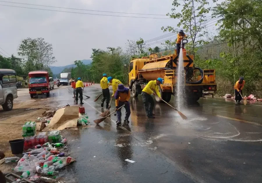 8 พ.ค. 67 เวลา 14.10 น. ร.ต.อ.ภูวนาถ กองคำ ผบ.มว.ตชด.3452 พร้อมกำลังพล ร่วมกับกำลังพลจิตอาสาฯ ร้อย ตชด.345 เข้าให้ความช่วยเหลือ และอำนวยความสะดวกอุบัติเหตุรถยนต์กระบะบรรทุกสินค้า หมายเลขทะเบียน 1ฒห 5490 กทม. พลิกคว่ำ บนทางหลวงหมายเลข 105 แม่สอด – แม่สะเรียง บริเวณก่อนถึงหน้าฐานปฏิบัติการบ้านหนองหลวง ม.13 ต.ขะเนจื้อ อ.แม่ระมาด จว.ตาก เบื้องต้นไม่มีผู้ได้รับบาดเจ็บ ทราบคนขับชื่อ นายกรวิชญ์ รักสถานกำเนิด สาเหตุเกิดจาก ยางรถยนต์คันดังกล่าวระเบิด ทำให้เสียหลักพลิกคว่ำ