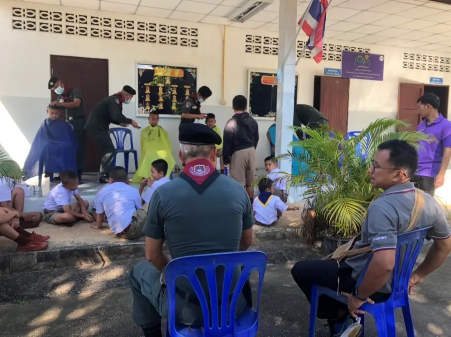 1 พ.ย. 66 เวลา 09.00 – 11.00 น. ร.ต.อ.แสวง ยศหล้า รอง สว.(ป.) กก.ตขด.34/ รรท. ผบ.มว.มชส. พร้อมกำลังพล ออกให้บริการตัดผมเด็กนักเรียน โรงเรียนกลาโหมราชเสนา บ.หม่องวา ม.6 ต.ขะเนจื้อ อ.แม่ระมาด จว.ตาก โดยมี นายสมฤกษ์ ทิมขาว ผู้อำนวยการโรงเรียน และคณะครูให้การต้อนรับ มีนักเรียนเข้ารับบริการตัดผมจำนวน 32 คน