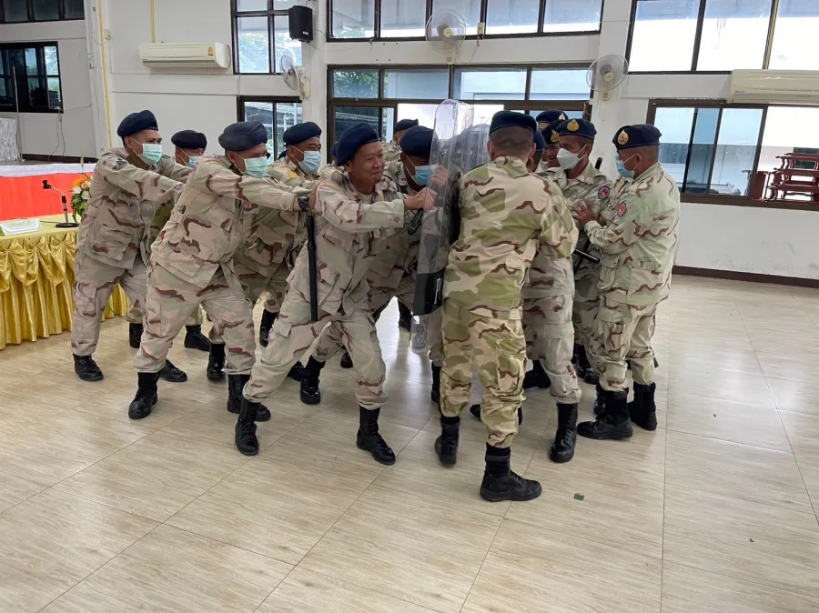 6 ก.ย. 66 เวลา 09.00 – 10.30 น. ร.ต.อ.วสันต์ จันทมาลา รอง ผบ.ร้อย ตชด.345 พร้อมกำลังพล 1 ชป. เป็นวิทยากร/ครูฝึก ได้ทำการฝึกทบทวนการป้องกันการก่อความไม่สงบ ให้กับสมาชิกกองอาสารักษาดินแดน อำเภอแม่ระมาด โดยได้บรรยายหัวข้อ ความรู้เกี่ยวกับหลักการในการควบคุมฝูงชนและจิตวิทยามวลชน ฝึกภาคปฏิบัติในการควบคุมฝูงชนและอุปกรณ์ ในภารกิจ ณ ที่ว่าการอำเภอแม่ระมาด จังหวัดตาก มีผู้เข้ารับการฝึก จำนวน 22 คน